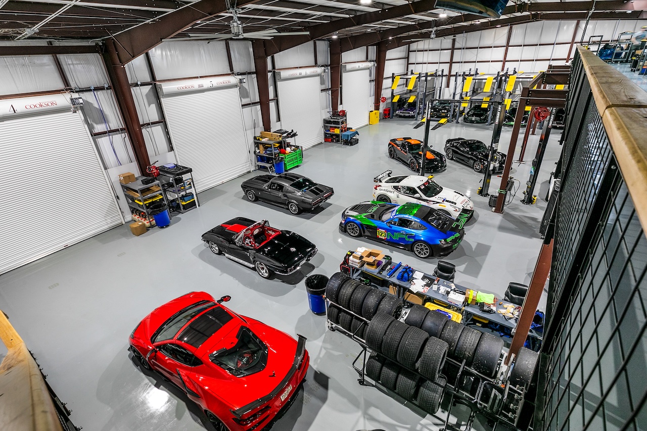 Engineered for speed, efficiency, and comfort, the garage includes 11 triple-stack lifts, 2 dual-post lifts, 1 alignment rack, and 4 rollup doors, all supported by 40 tons of HVAC and dual 22’ high-volume circulation fans. A Mancave lounge and kitchen provide premium amenities, while every detail—from mezzanine deck strength to workflow optimization—is executed with precision to serve elite motorsports teams